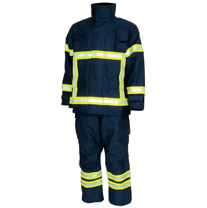 Plamenootporne reflektirajuće trake raspoređene su oko jakne, rubova, manžeta rukava i donjeg dijela hlača kako bi se osigurala vidljivost i sigurnost vatrogasca.Dodatni slojevi za otpornost na habanje na vratu, laktovima i koljenima.
